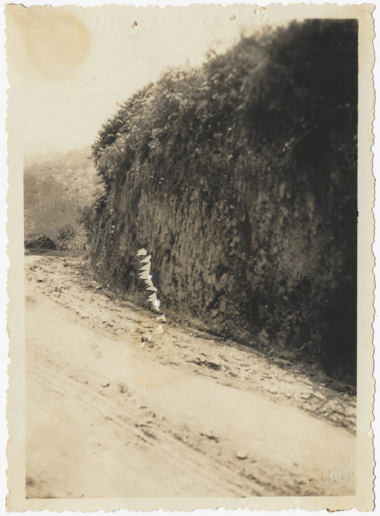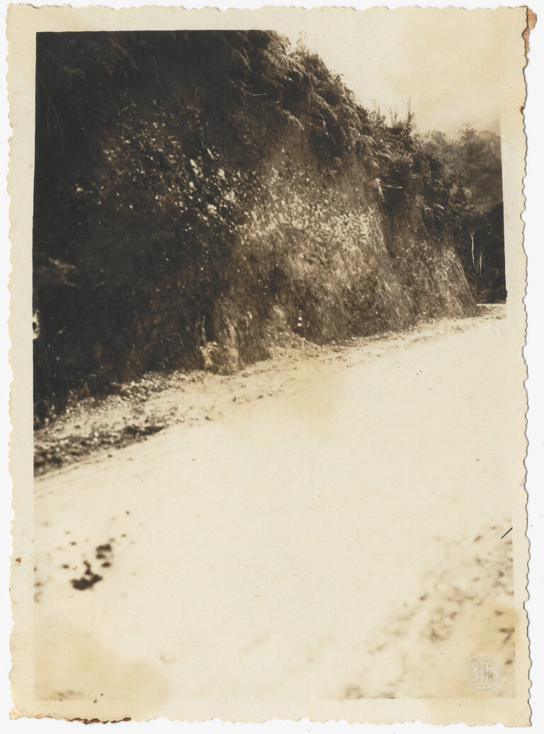 Trecho da estrada de terra que liga as localidades de Brusque e Ribeirão do Ouro (atual Botuverá), em Santa Catarina. A imagem é composta em perspectiva ascendente, com...