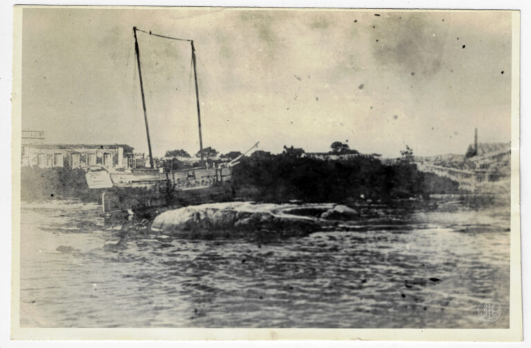 O vapor Meta navegando no Rio Araranguá, em Santa Catarina. A imagem organiza-se com o corpo d’água em primeiro plano, apresentando uma superfície calma com leves reflexos da...