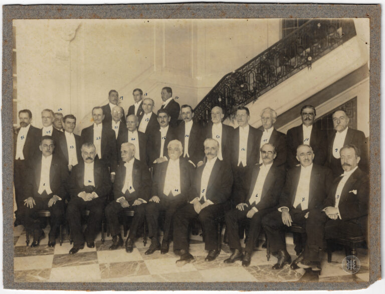 by Eugenio Pelegrin Leia Mais...Grupo de 26 homens reunidos no salão do Derby Club, no Rio de Janeiro, em 3 de maio de 1918, momentos antes de um banquete. Os sujeitos estão...