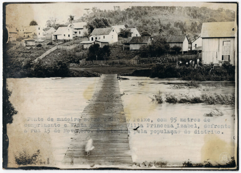 by Ingrid Muller Rodrigues Leia Mais...Ponte de madeira sobre o Rio do Peixe e uma vista parcial no antigo distrito de Princesa Isabel, em Caçador, Santa Catarina. Atualmente a localidade pertence ao município...