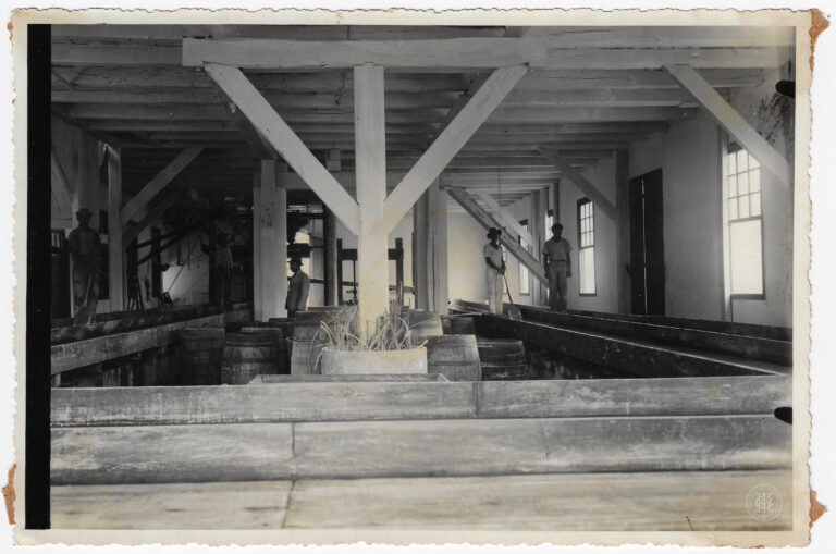 by Leticia Emanuelle Rigo Leia Mais...Interior da Fecolaria e fábrica de Maisena de Otto Schaefer, em Brusque, Santa Catarina. A imagem apresenta uma perspectiva central profunda do interior da fábrica, estruturada por vigas...