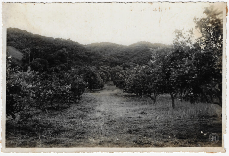 by Leticia Emanuelle Rigo Leia Mais...Esta fotografia horizontal em tons de preto e branco, com o suporte de papel apresentando bordas regulares, registra uma plantação de cana-de-açúcar na propriedade de J. J. Silva,...