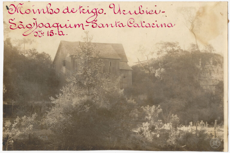 by Eugenio Pelegrin Leia Mais...Moinho de trigo em Urubici, no período em que a localidade pertencia ao município de São Joaquim, Santa Catarina. A imagem apresenta uma edificação industrial de madeira de...