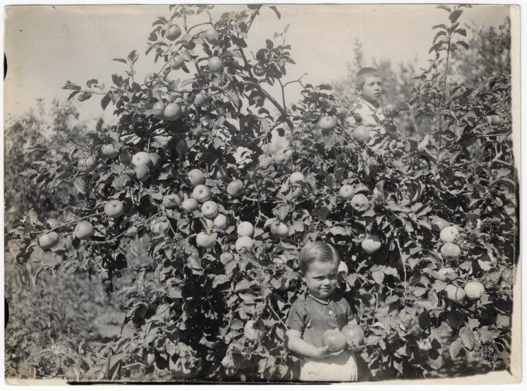 by Eugenio Pelegrin Leia Mais...Duas crianças num pomar de macieiras carregado de frutos, em São Joaquim, Santa Catarina. A composição é dominada por uma grande macieira no plano médio, cujos ramos pendem...