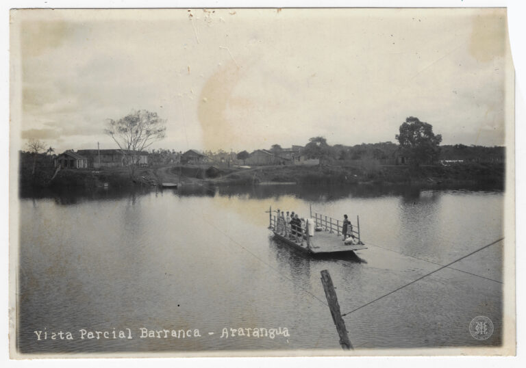 by Leticia Emanuelle Rigo Leia Mais...Esta fotografia em preto e branco, com orientação horizontal, registra uma vista panorâmica de um corpo d’água em Araranguá, Santa Catarina, identificado pela legenda impressa no anverso como...