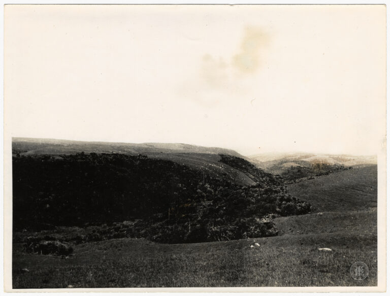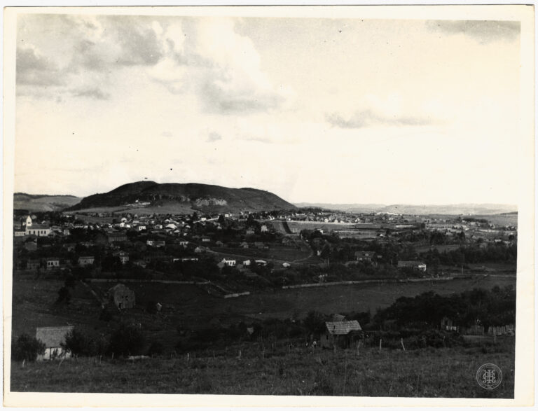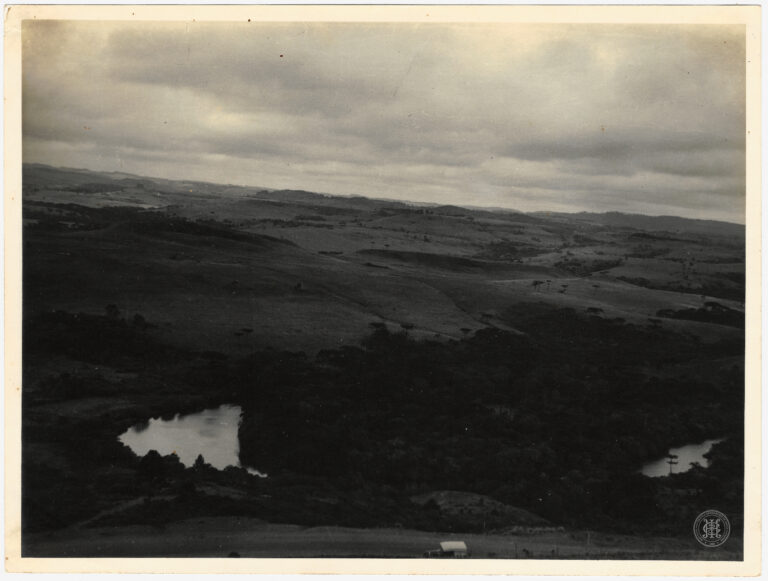 Vista panorâmica de uma paisagem serrana no estado de Santa Catarina, caracterizada por relevo ondulado e vegetação de transição. A composição organiza-se a partir de um primeiro plano...