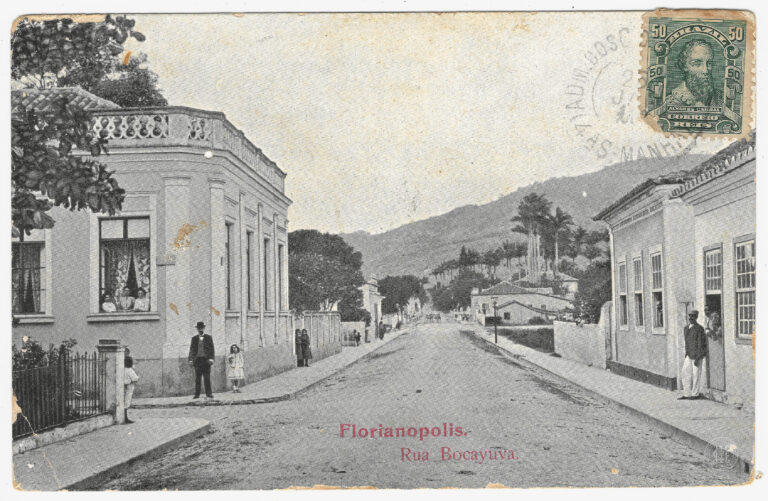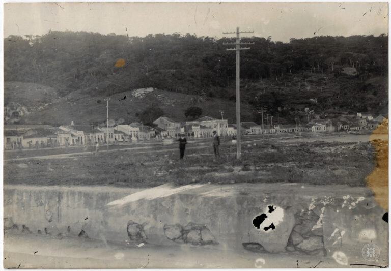Entrada do Posto Zootecnico “Dr. Assis Brasil”, fundado em fevereiro de 1920 no governo Dr. Hercilio Luz, situado no Bairro Carvoeira, em Florianópolis. No primeiro plano, à esquerda,...