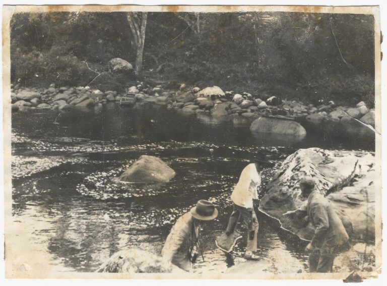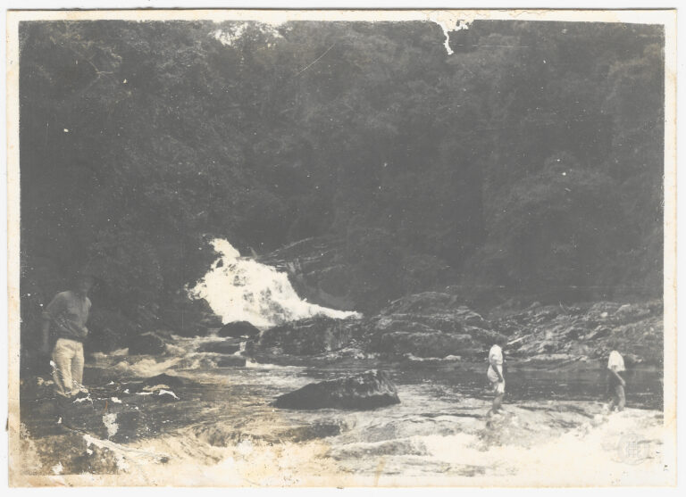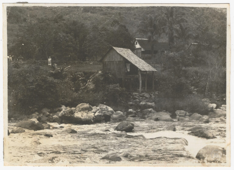 by Cleiton Bitencourt Leia Mais...Cena de travessia ou atividade em curso d’água no município de Timbó, Santa Catarina. Em primeiro plano, três figuras masculinas adultas ocupam a porção inferior direita da composição:...