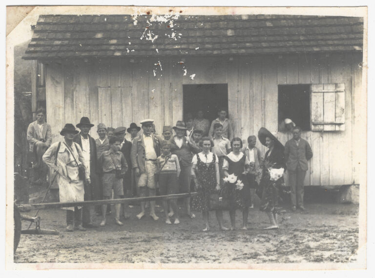 by Cleiton Bitencourt Leia Mais...Agrupamento de pessoas em frente a uma edificação de madeira no município de Timbó, Santa Catarina. Em primeiro plano, uma multidão composta por homens, mulheres e crianças de...