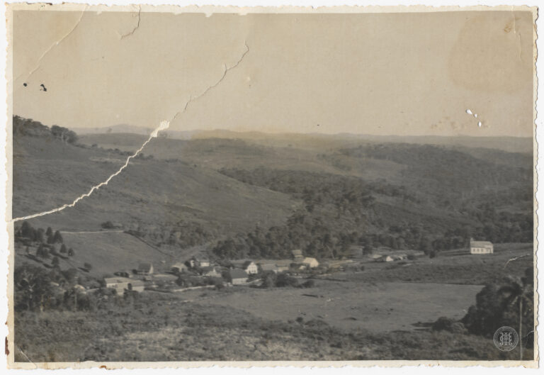 A fachada frontal e parte da lateral da Igreja Matriz Santa Otília em Orleans, Santa Catarina, durante o processo de construção. A edificação religiosa, de estilo neogótico, ocupa...