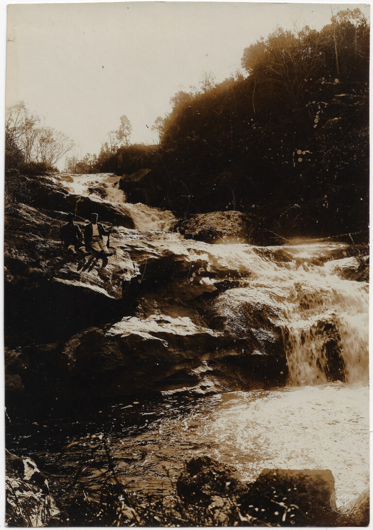 by Eugenio Pelegrin Leia Mais...Fachada da Venda de W. Westphal, localizada em Teresópolis, no atual município de Águas Mornas, Santa Catarina. A imagem organiza-se em três planos principais, capturando um grupo de...