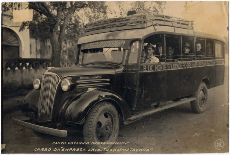 by Eugenio Pelegrin Leia Mais...Veículo de transporte coletivo da “Empreza Lmta. Transportadora”, no município de Urussanga, Santa Catarina. O elemento central é um ônibus adaptado sobre chassi Chevrolet Gigante, posicionado em ângulo...