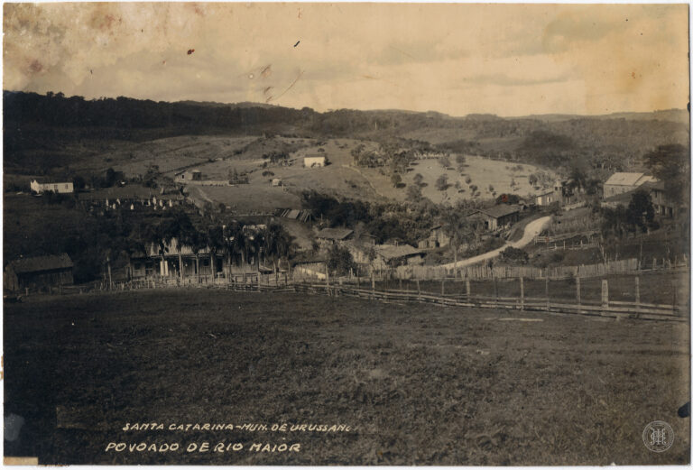 by Eugenio Pelegrin Leia Mais...Vista panorâmica do Povoado de Rio Maior, em Urussanga, Santa Catarina. A imagem organiza-se a partir de um plano elevado, destacando em primeiro plano uma área de pastagem...