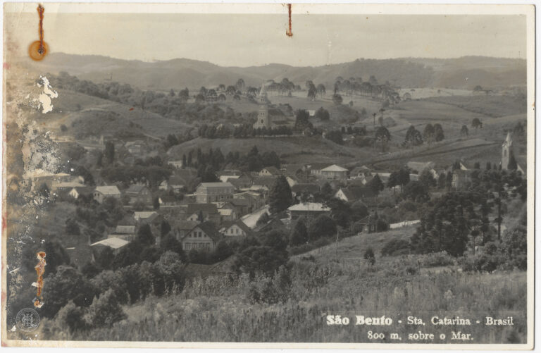 by Eugenio Pelegrin Leia Mais...Vista aérea parcial do núcleo urbano de São Bento, atual São Bento do Sul, em Santa Catarina. A composição organiza-se a partir de um plano elevado, apresentando em...
