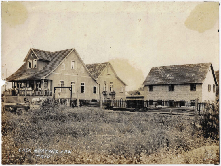 Residência identificada como Casa Hartwig Ern, situada em Taió, na região de Rio do Sul, Santa Catarina. A edificação é uma construção de madeira de um pavimento com...