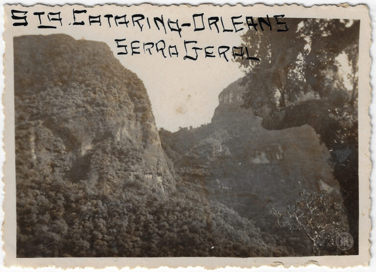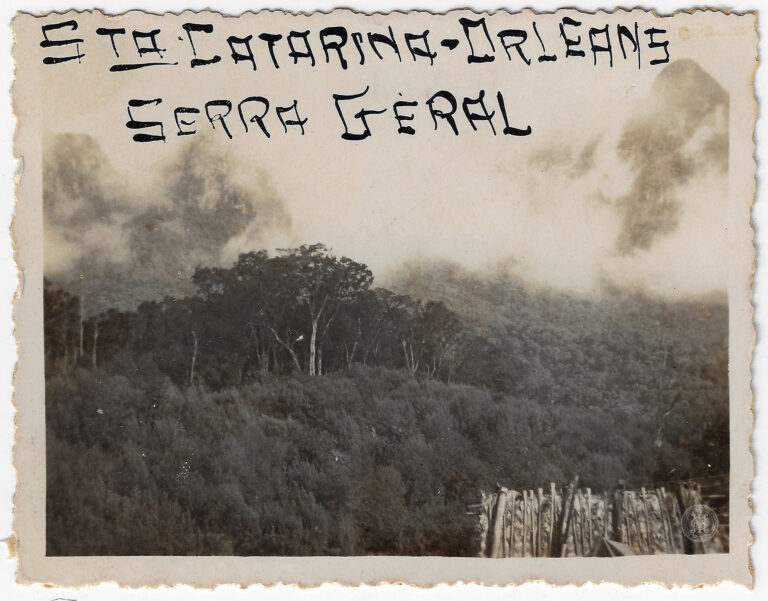 Vista panorâmica de uma região de vale entre os municípios de Rodeio e Benedito Novo, Santa Catarina. Em primeiro plano, observa-se uma encosta com vegetação rasteira e arbustiva...