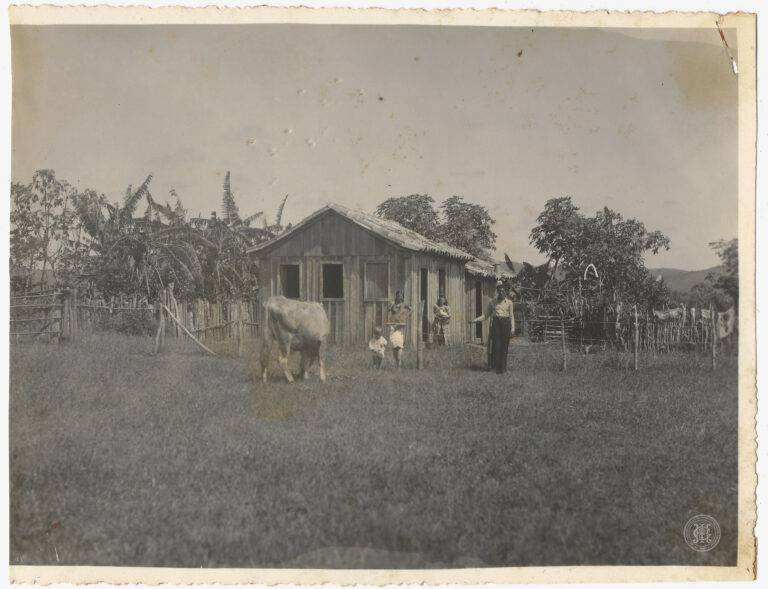 by Eugenio Pelegrin Leia Mais...Vista parcial da localidade de Morro Grande, no município de Jaguaruna, Santa Catarina, no ano de 1938. A imagem apresenta uma perspectiva de rua em solo natural que...