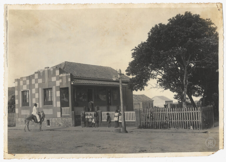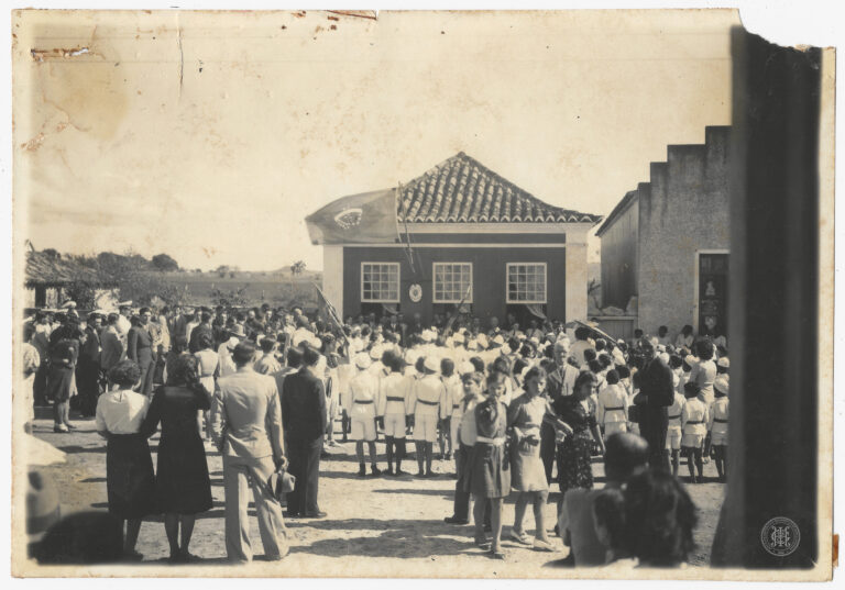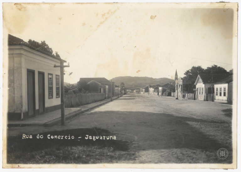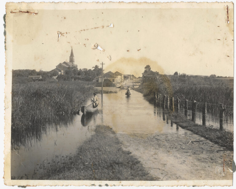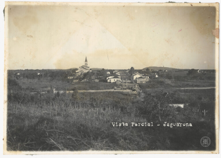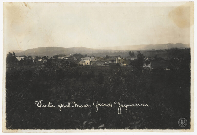 Datada de 1938, apresenta uma vista panorâmica da localidade de Sangão, em Jaguaruna, Santa Catarina. A composição organiza-se a partir de um plano elevado, exibindo em primeiro plano...