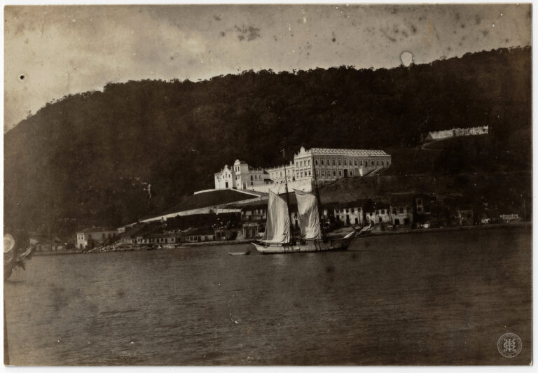 Esta fotografia registra a fase de construção das instalações do 14° Batalhão de Caçadores (atual 63° Batalhão de Infantaria) em Florianópolis, Santa Catarina. A edificação militar, de grandes...