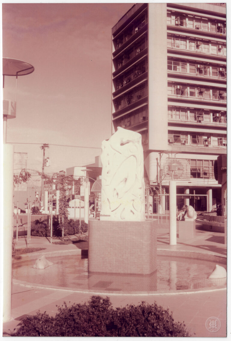 by Ingrid Muller Rodrigues Leia Mais...Esta fotografia registra a Praça Pio XII em Florianópolis, Santa Catarina, no ano de 1996. A composição é centralizada por uma fonte circular em primeiro plano, que possui...