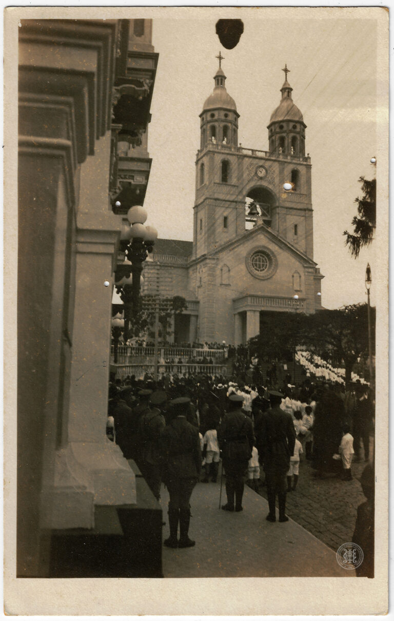Esta fotografia registra a construção do 14° Batalhão de Caçadores, localizado no bairro Estreito, em Florianópolis, Santa Catarina. A imagem apresenta uma edificação de grandes dimensões em estágio...