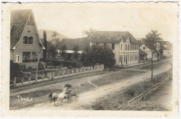 Solenidade de inauguração do Jardim de Infância Princesa Isabel, ocorrida em 7 de setembro de 1939, em Timbó, Santa Catarina. A imagem apresenta uma vasta aglomeração de pessoas...