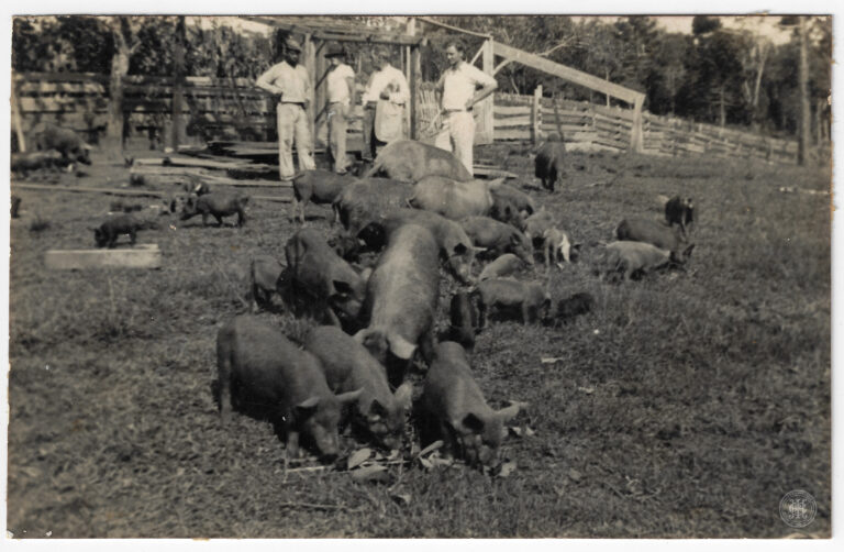 by Eugenio Pelegrin Leia Mais...Criação de porcos no município de Itaiópolis, Santa Catarina. A composição organiza-se com um numeroso grupo de suínos de diferentes tamanhos distribuídos pelo primeiro plano e plano médio,...