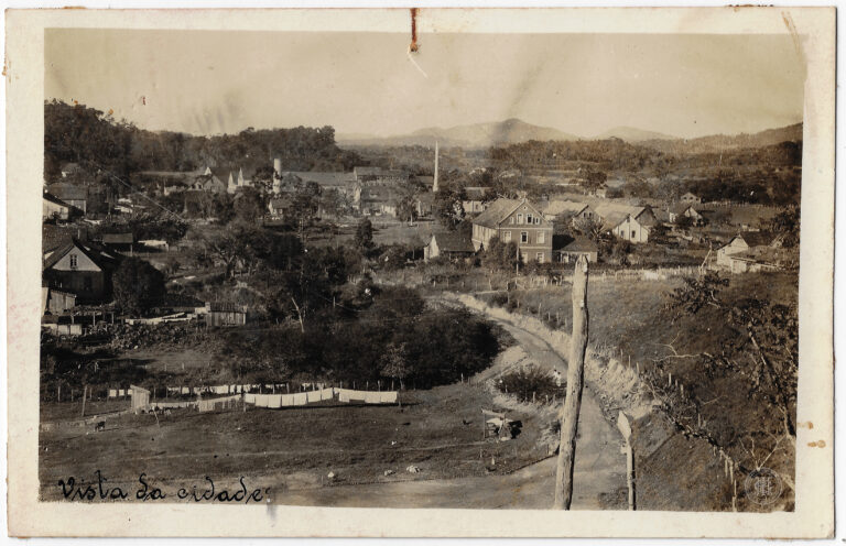 by Eugenio Pelegrin Leia Mais...A imagem apresenta a Rua Coronel Aristiliano Ramos, no município de Gaspar, Santa Catarina. No primeiro plano, à esquerda, observa-se parte de uma carroça de tração animal com...