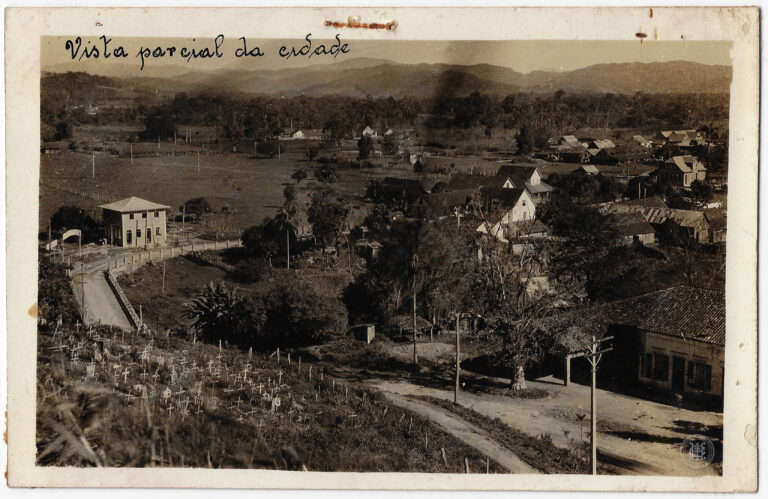 by Ingrid Muller Rodrigues Leia Mais...A imagem apresenta uma vista da parte leste da cidade de Gaspar, em Santa Catarina. No primeiro plano, à direita, destaca-se um poste de madeira em posição vertical...