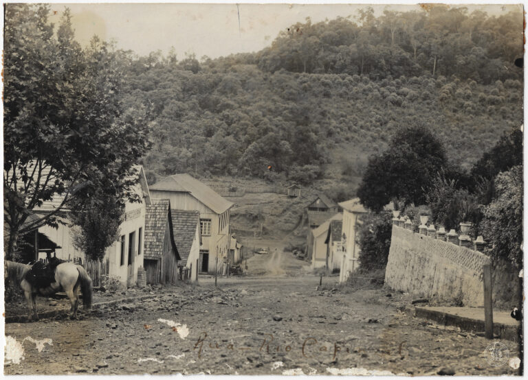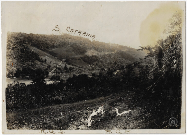 Extrativista de erva-mate em uma área rural historicamente vinculada à região de Blumenau e ao atual município de Canoinhas, Santa Catarina. A cena organiza-se com um terreno de...