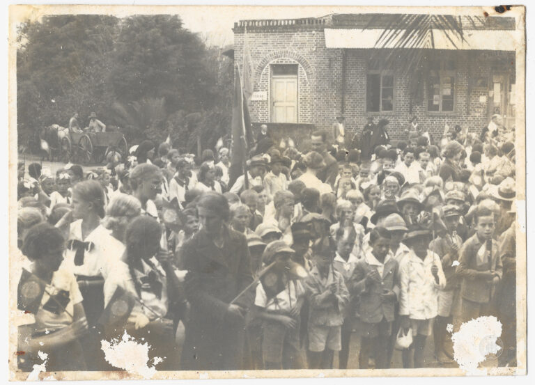 by Cleiton Bitencourt Leia Mais...Aglomeração de pessoas, majoritariamente crianças e adolescentes, em frente a uma edificação de alvenaria em Timbó, Santa Catarina. Em primeiro plano e plano médio, os sujeitos estão dispostos...