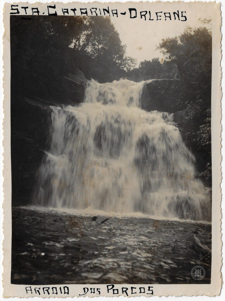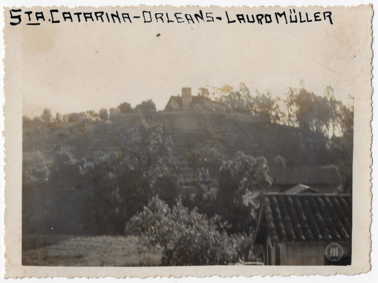 A fachada frontal e parte da lateral da Igreja Matriz Santa Otília em Orleans, Santa Catarina, durante o processo de construção. A edificação religiosa, de estilo neogótico, ocupa...