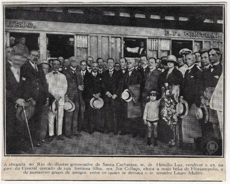 by Eugenio Pelegrin Leia Mais...Registro da chegada do Governador de Santa Catarina, Hercílio Luz, à Estação Central do Brasil, no Rio de Janeiro, em 1920. A imagem captura um numeroso grupo de...