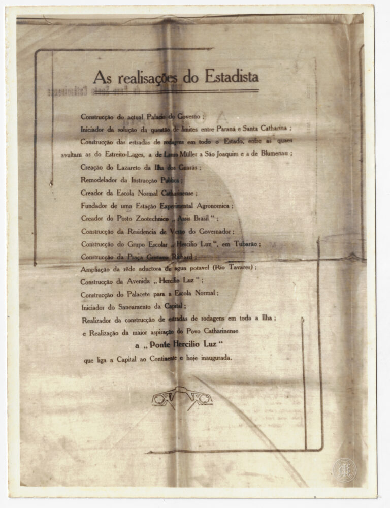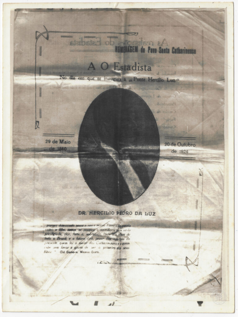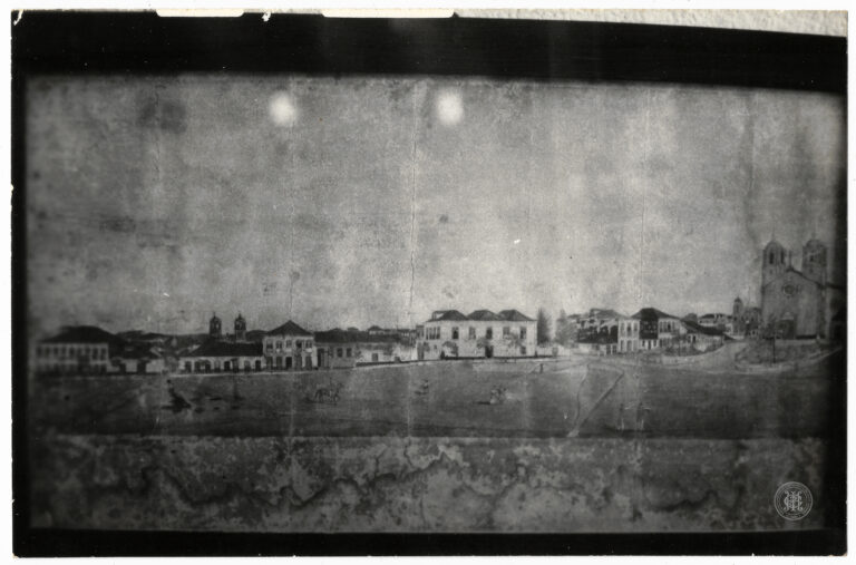 Reprodução fotográfica da obra pictórica “Vista Parcial da Cidade de Nossa Senhora do Desterro”, pintada por Victor Meirelles de Lima em 1846. A composição registra o núcleo urbano...